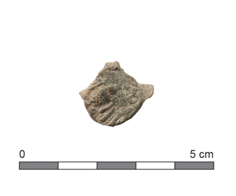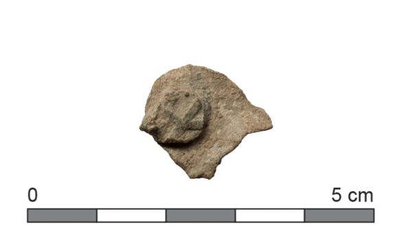 Fragment van een merklood, met onduidelijke voorstelling.